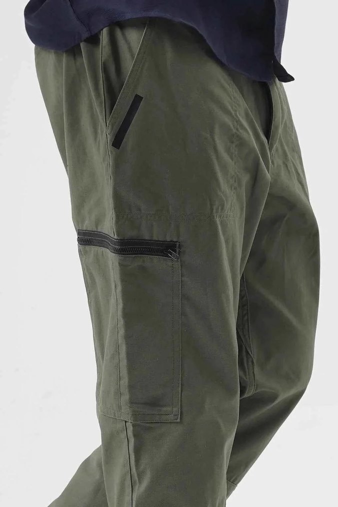 Haki Renk Fermuarlı Gevşek Kesim Erkek Pantolon
