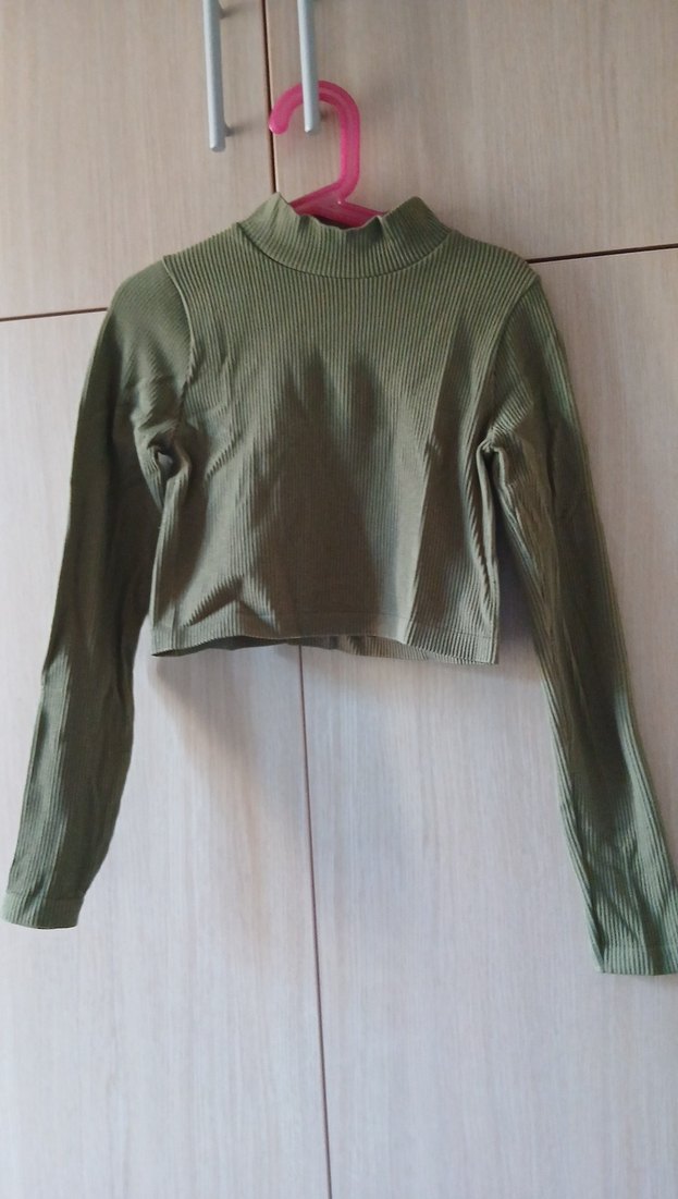 sporcu Haki renkli kadın triko kazak, boğazlı yaka ve uzun kollu, vücuda oturan kesime sahiptir. Yumuşak sentetik kumaştan örülmüş, minimalist ve trend sokak stili sunar.