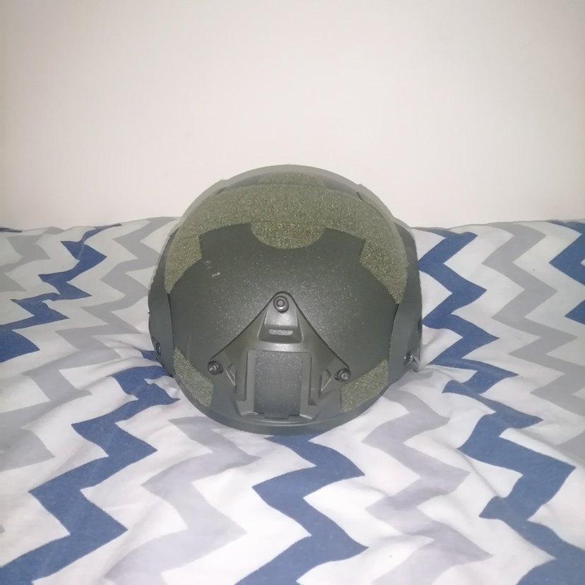 Ayarlanabilir kayışlı, haki renk koruyucu kask.