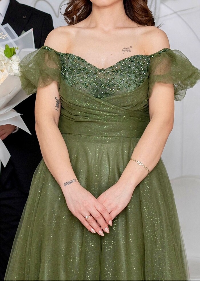 1 kere nişanda giyildi. 42 beden, sırtı korse model istenilen kalıba göre ayarlanabiliyor. #nişanlık #abiye #haki #straplez