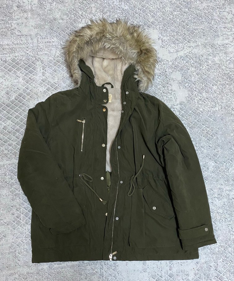 Herhangi bir kusuru yok içi kürklü beli bağcıklı şapkasındaki çıkıyor kısa değil orta boy sıcakta tutuyor bir beden büyük almıştım Oversize durması için Boyu :74cm Genişliği :63cm Kol boyu : 68cm Beden XL /XXL marka defacto