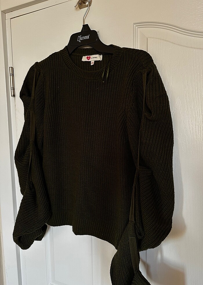Haki xs beden koton triko kazak kol detaylı