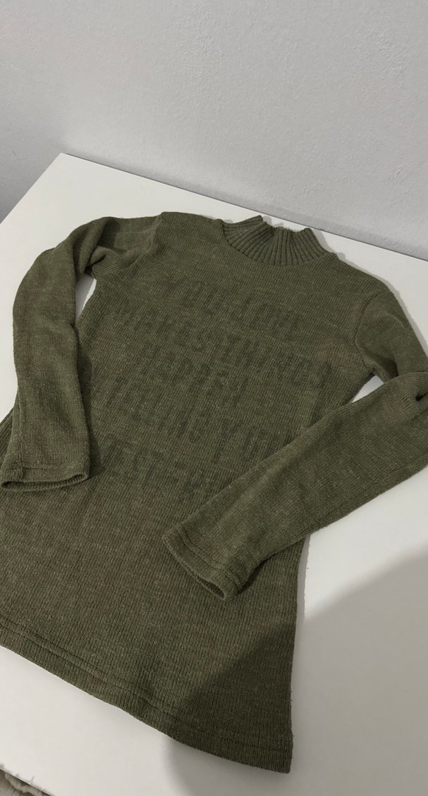 Haki renk yünlü, yarım balıkçı yakalı, uzun kollu ve vücuda oturan kadın kazak. Desensiz, rahat ve sade tasarımıyla günlük kullanıma uygundur.
