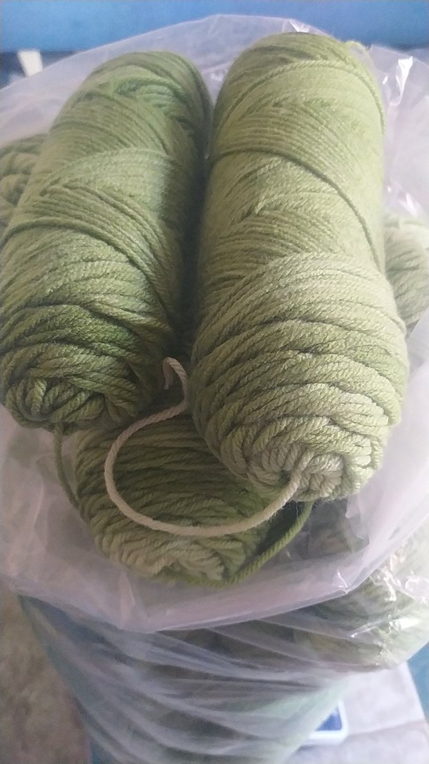 Haki renkli, yumuşak dokulu ve dayanıklı el işi ipi. Çeşitli el sanatları projeleri için uygundur. hepsi 6 kilodan fazla geliyor.fiyati 1500₺