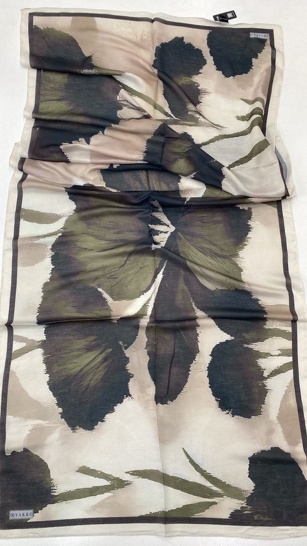 Kadınlar için dökümlü tasarıma sahip, koyu haki tonlarında çağdaş ve avangart şal.