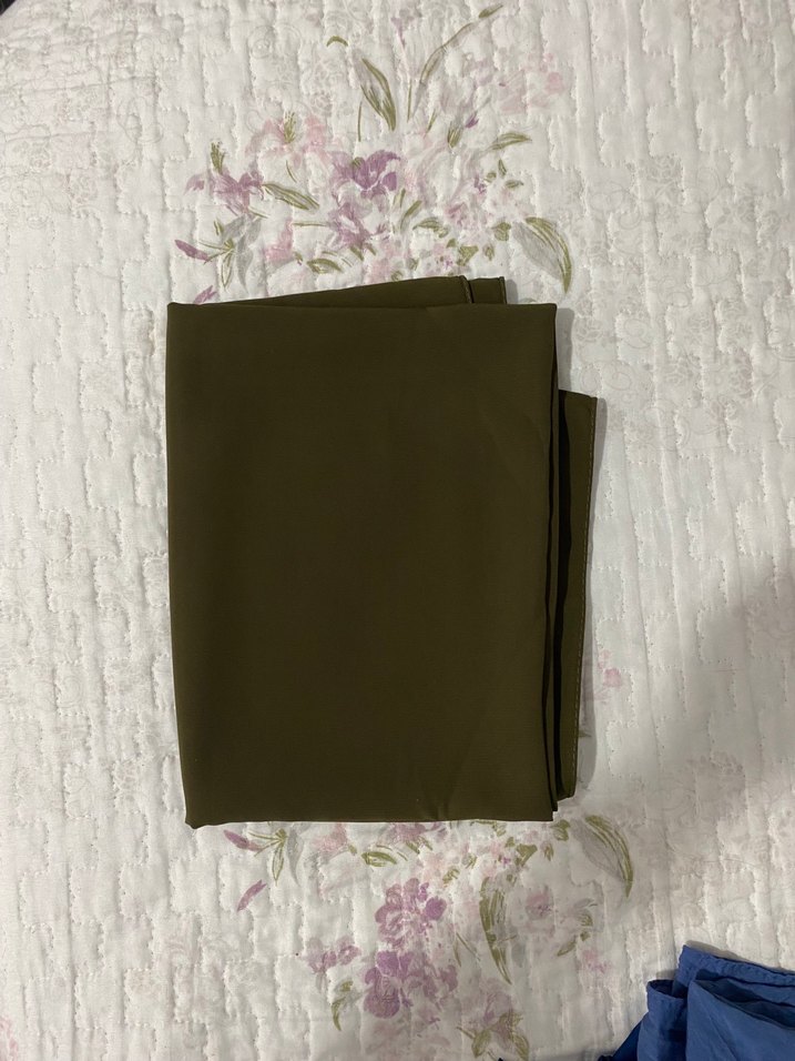Haki renkte, sentetik kumaştan üretilmiş, drapeli tasarıma sahip kadın şalı. Minimalist ve bohem tarzlara uyum sağlar. Haki renkli medine ipeği şal defosu yok