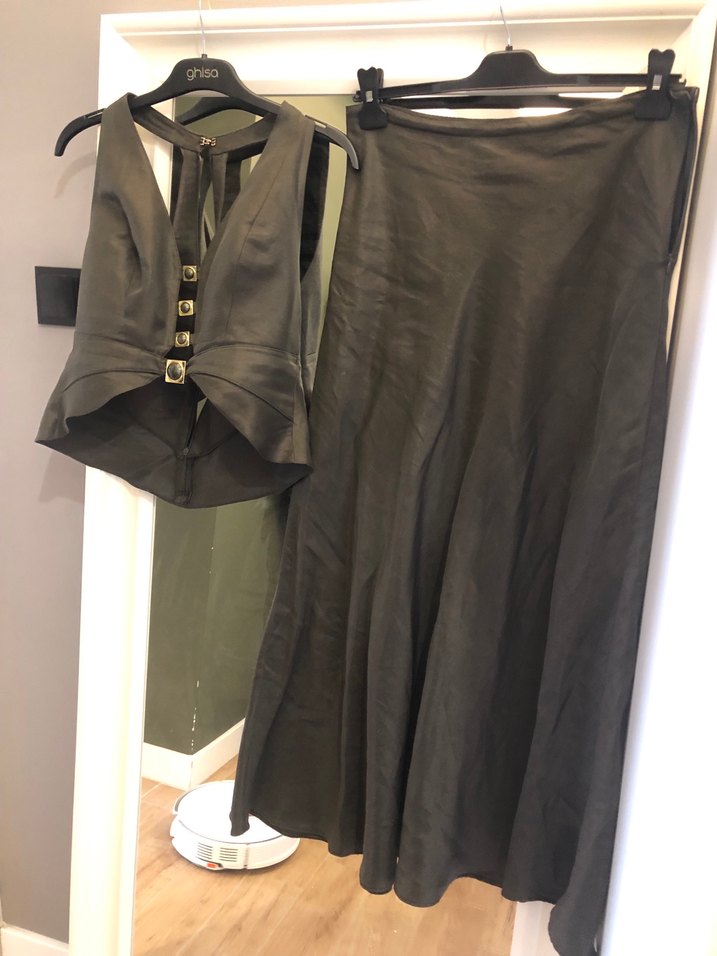 Haki renkte Kadın uzun Saten Etek ve yelek