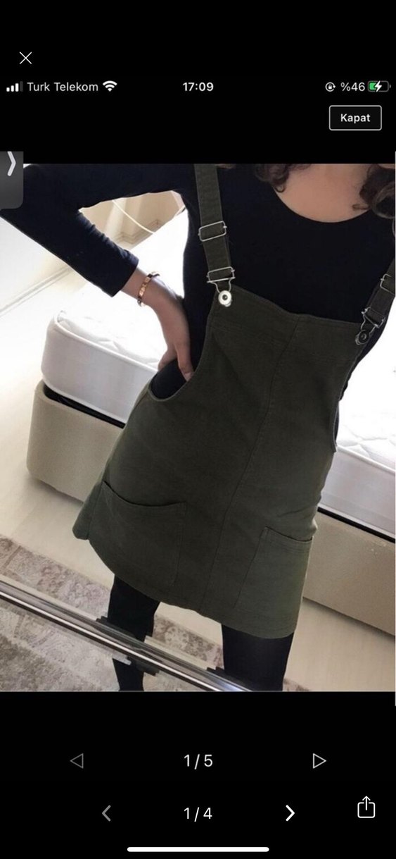 Yeni sorunsuz bir kaç defa kullanıldı Kahverengi süet kumaştan, kemerli ve askılı kısa overall. Yüksek yakalı, fitted kesim ve günlük kullanıma uygun şık bir parça.