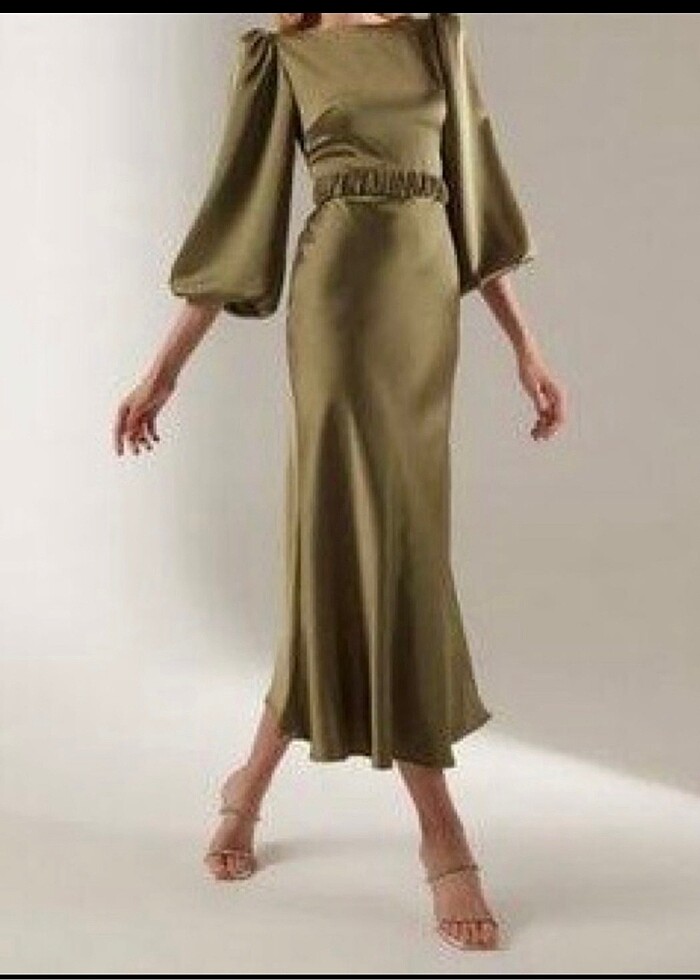 Haki saten abiye elbise