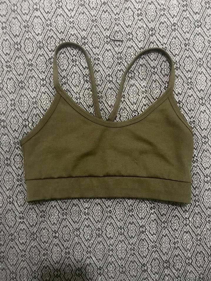 İnce askılı, desensiz haki spor sütyeni, athleisure ve streetwear tarzına uygundur. ️♀️