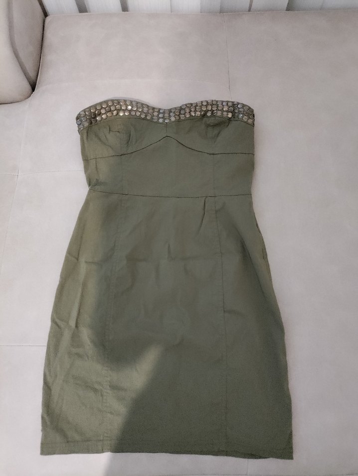 Haki Straplez Mini Elbise