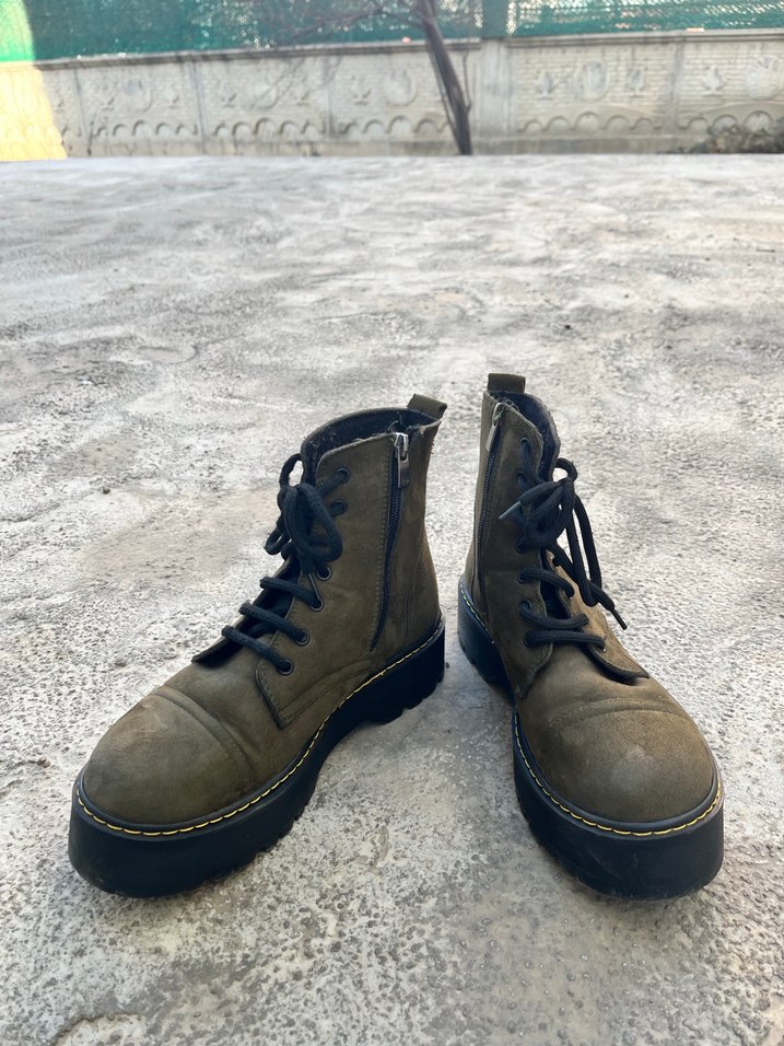 Bir kaç kez giyildi yeniden farksız.Haki süet kadın bot, bağcıklı. Günlük kullanım için uygun.