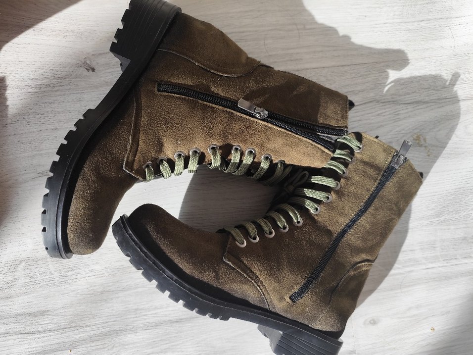 Haki süet kamuflaj desenli biker bot, kalın topuklu ve kemerli detaylı. Yan fermuarı ile günlük kullanıma uygun, trend görünümlü.bir kez giyildi olmadığı için satıyorum marka temsilidir
