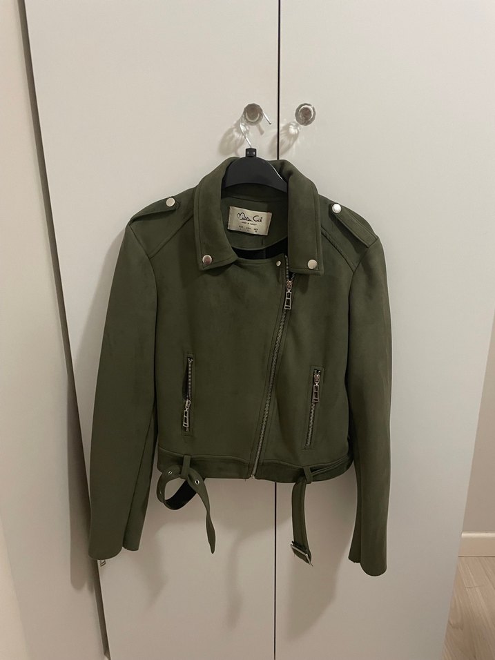 Haki Süet Kemerli Biker Ceket