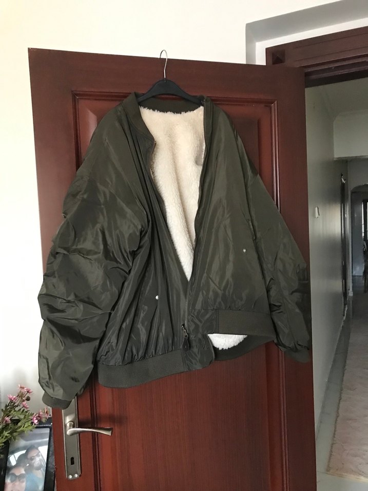 Kadın mont, bol kesim, uzun kollu ve yaka detaylıdır. Orta boyda, yumuşak ve sıcak kumaştan, içi suni kürklü, sade ve koyu haki Günlük kullanıma uygundur. Salaş kollar büzgülü detay boy75 cm iki kol arası 64 beden xl ‘a kadar olur