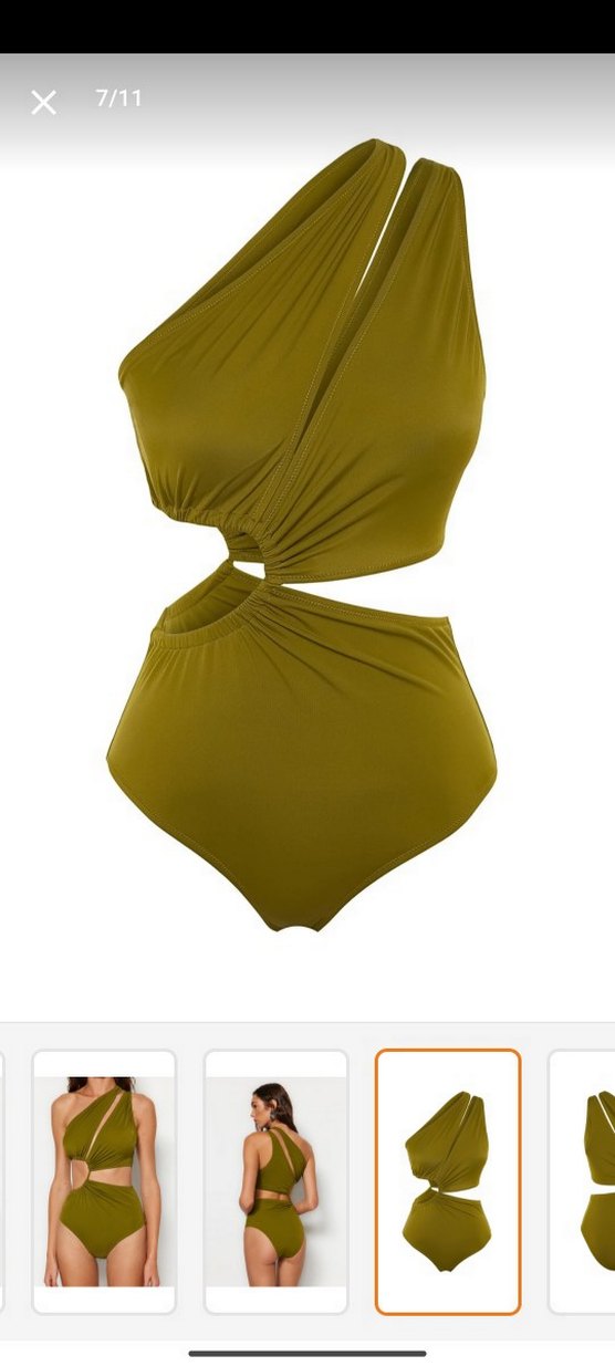 Haki tek omuz pencereli mayokini