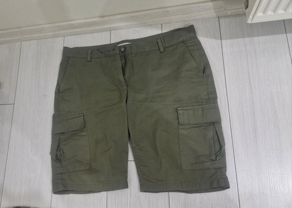 Haki tonlarda kamuflaj desenli, keten kumaştan yapılmış bol kesim erkek şort. Outdoor ve günlük sokak stiline uygun.