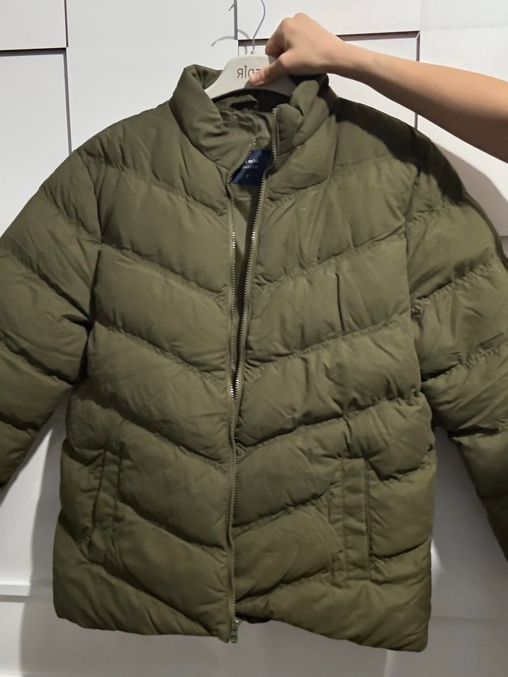uzun kollu, haki renkli, kışlık mont. Sıcak tutan sentetik kumaştan, günlük kullanıma uygun. ❄️