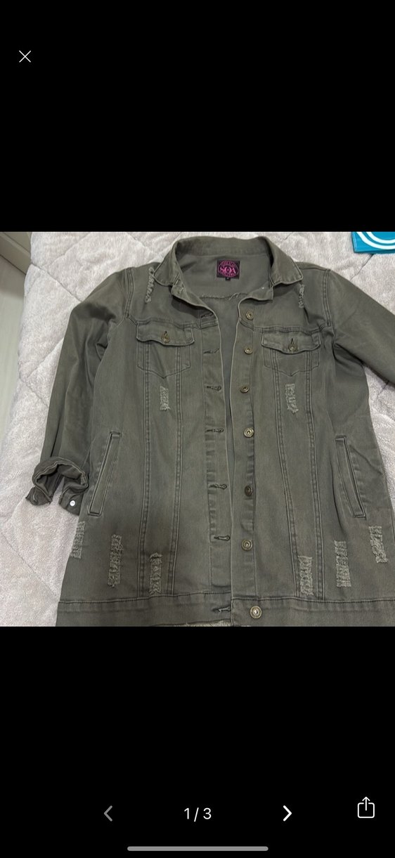 Bu uzun haki denim ceket, düğmeli kapama ve kesik yakaya sahip bol kesimdir. Uzun kollu, günlük kullanıma uygun rahat sokak stili.
