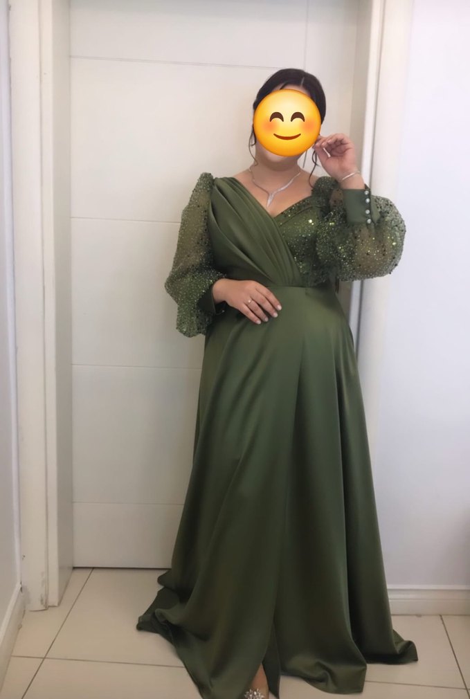 Haki renk, uzun ve drapeli tasarıma sahip kadın abiye elbise. Düğün gibi özel günler için uygun, salaş kesim 44-46 arası olabilir. Nişanda bir kez giyildi çok şık bir abiye H.v.le ödemelerde biraz daha indirim yapabilirim