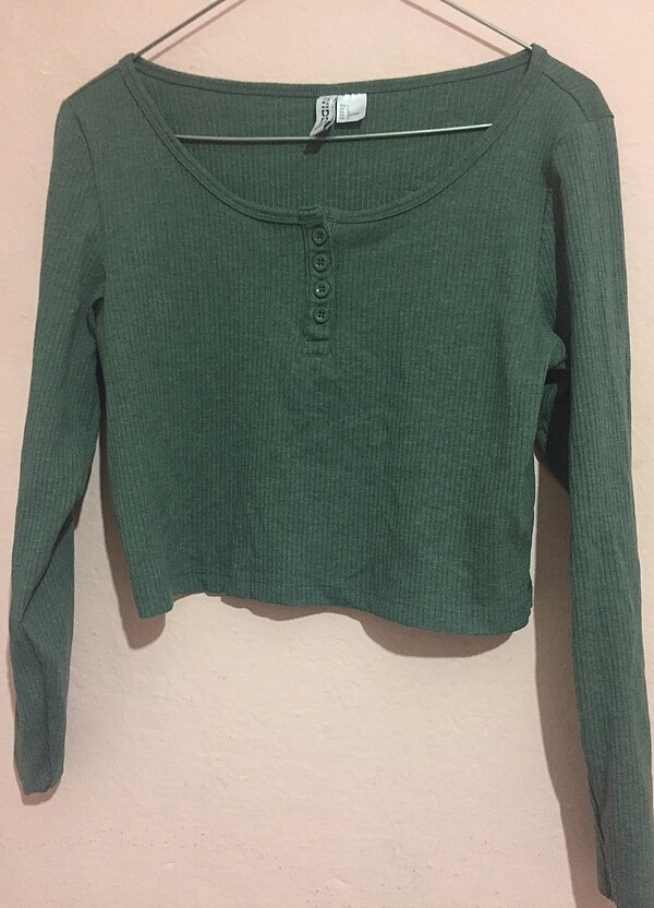 Haki uzun kollu crop
