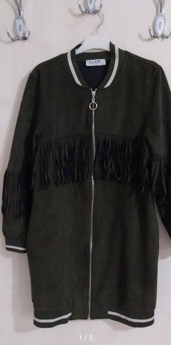 Haki Uzun Kollu Püsküllü Süet Kadın Kaban