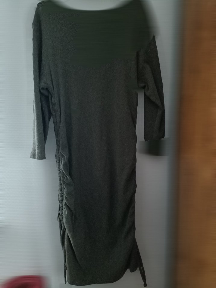 Haki renkte,likralı kumaş, uzun kollu ve vücuda oturan triko elbise. Yan tarafında drapeli detay bulunur, rahat ve günlük stil sunar. xl beden boy 95 cm. iki koltuk arası 47 cm.x2 bel 44 cm.x2 likralıdır. kalça 50 cm x2 likralıdır
