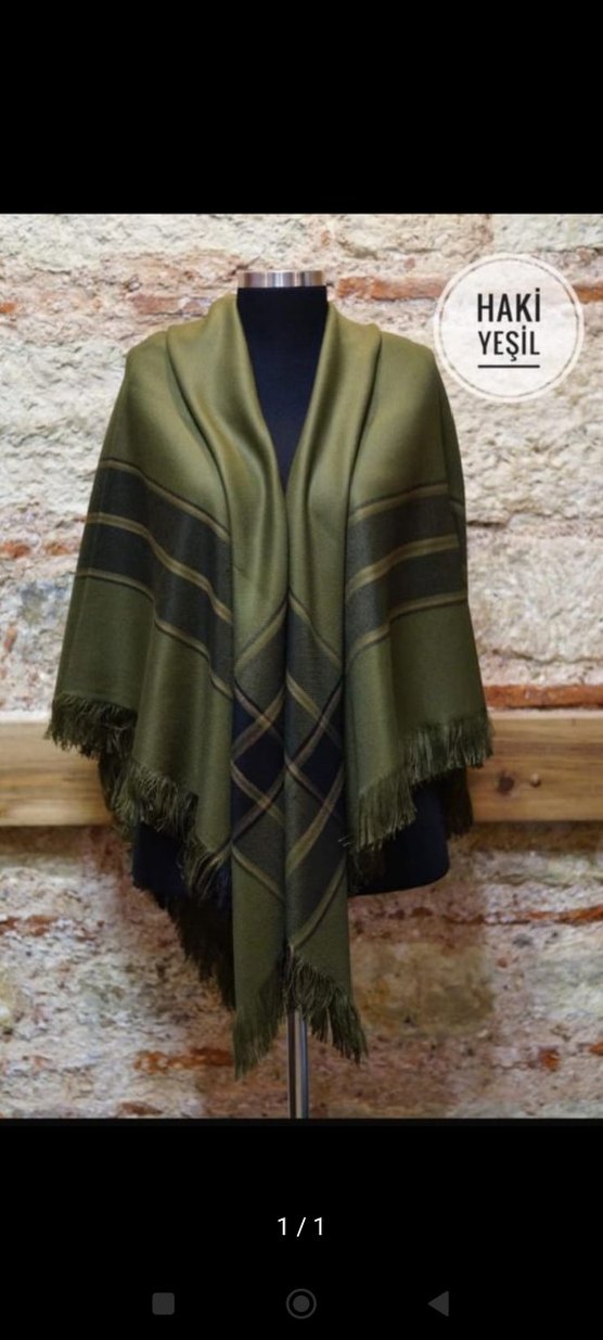 Kadınlar için drapeli, haki tonlarında uzun panço. Ekose desenli, püsküllü kenarlı, tekne yaka ve rahat kesim. Yumuşak sentetik kumaştan, günlük kullanıma uygun, bohem tarzda.