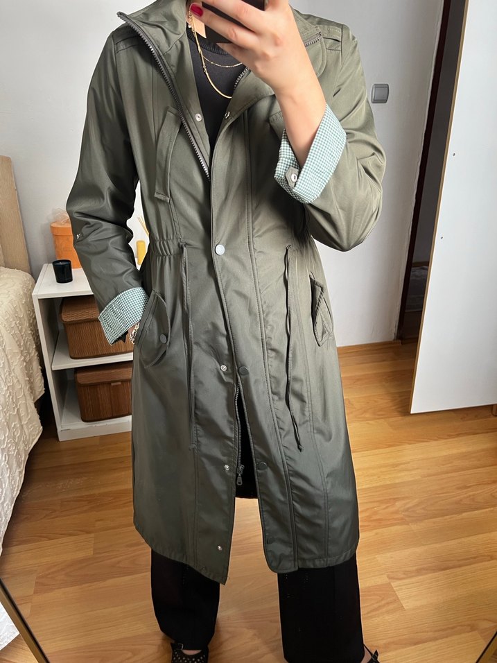 Haki uzun yağmurluk