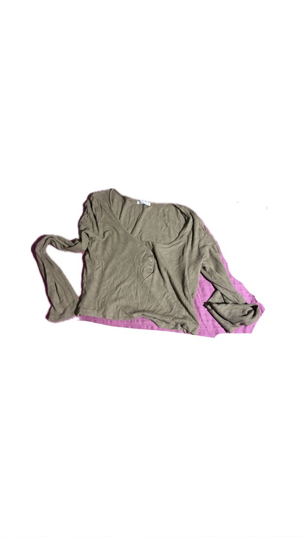 Haki renkli, uzun kollu ve V yakalı crop, yumuşak keten kumaştan üretilmiştir. Rahat kesimi ve normal midi boyu ile günlük kullanıma uygundur.