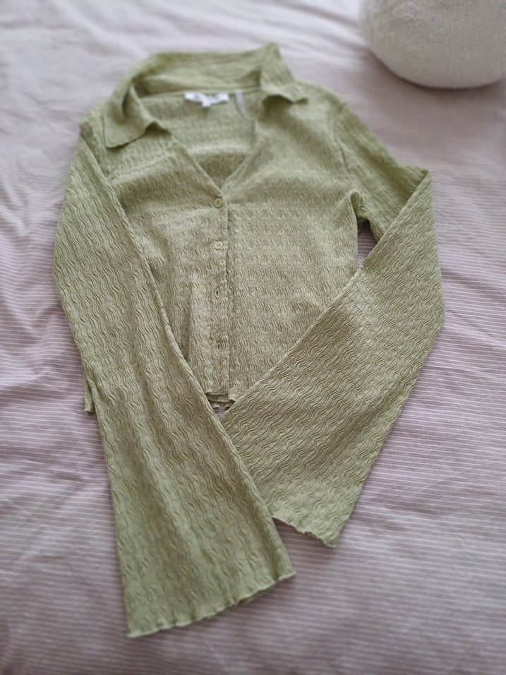 Haki renkli, uzun kollu ve V yakalı triko hırka. Rahat kesimi ve midi boyu ile yumuşak keten kumaştan üretilmiştir.