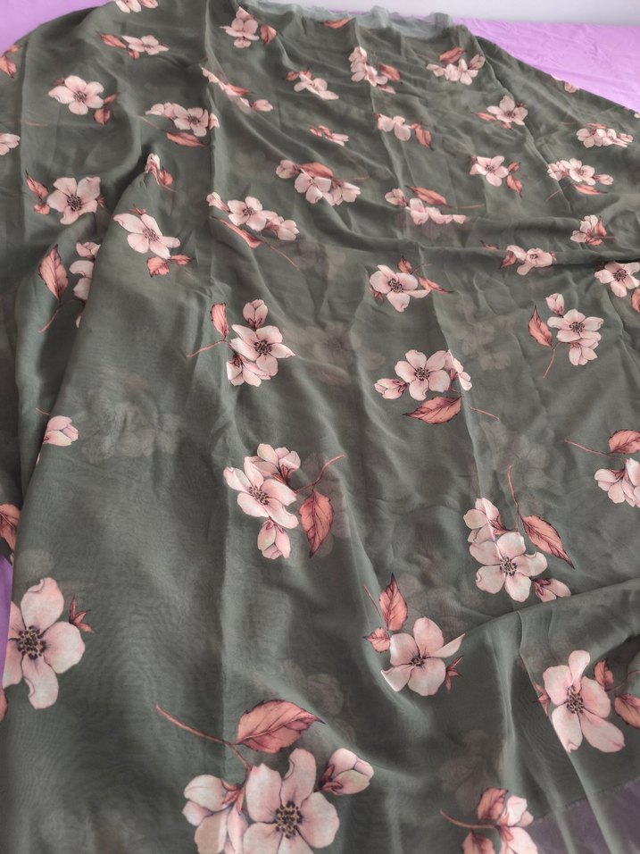 haki yeşil çiçek desenli elbiseli kumaş şifon eni 150 uzunluk 4,5 metre