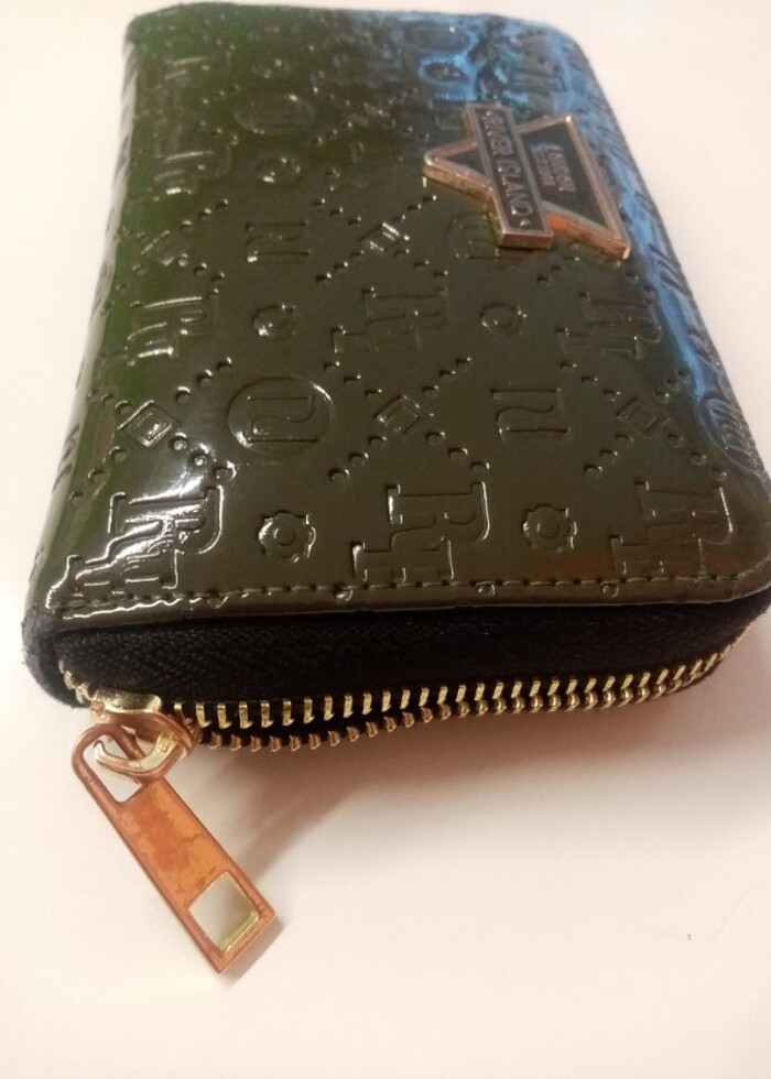 Haki yeşil, rugan, az kullanılmış, çok şık cüzdan. River Island marka