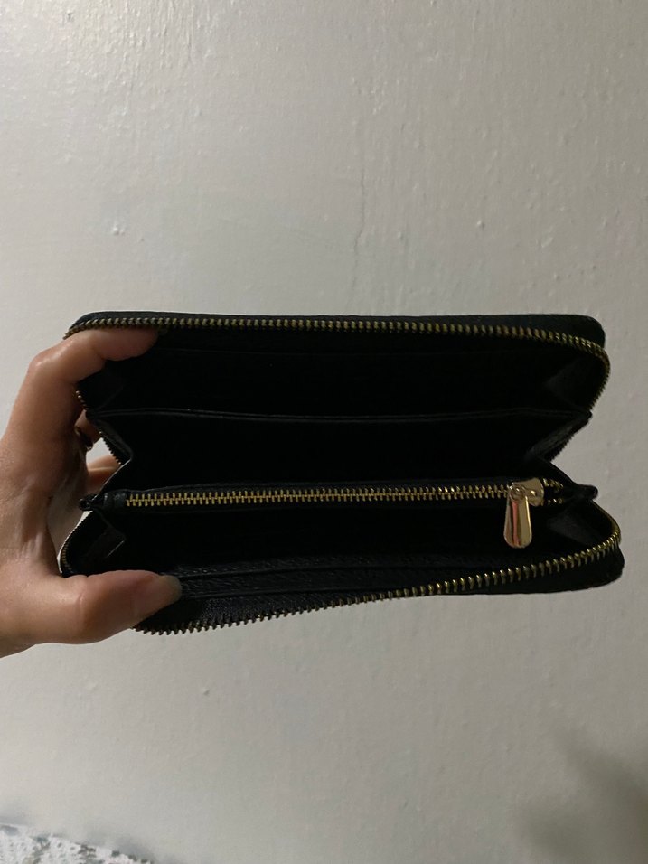 Haki yeşil deri yılan desenli kadın cüzdanı, fermuarlı kapanış ve sade Paris tarzıyla günlük sokak modasına uygun.
