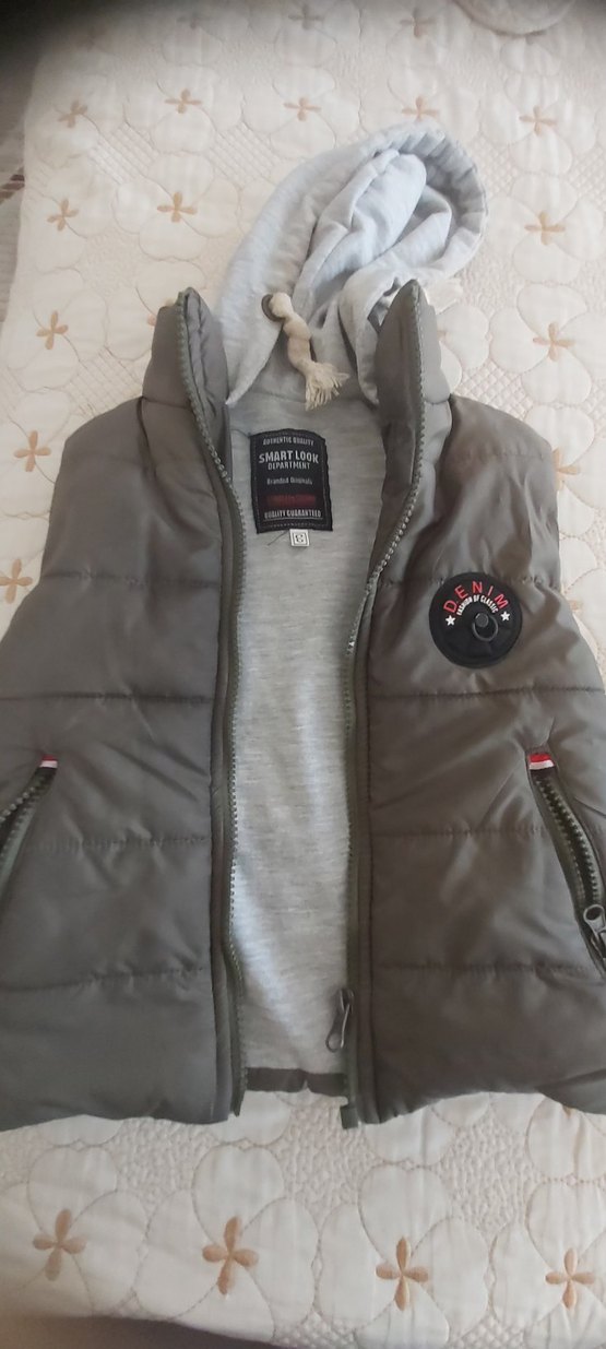 Haki renkte, denim patch detaylı, fit kesim erkek çocuk yeleği. Yumuşak ve sıcak kumaştan üretilmiştir. ✨
