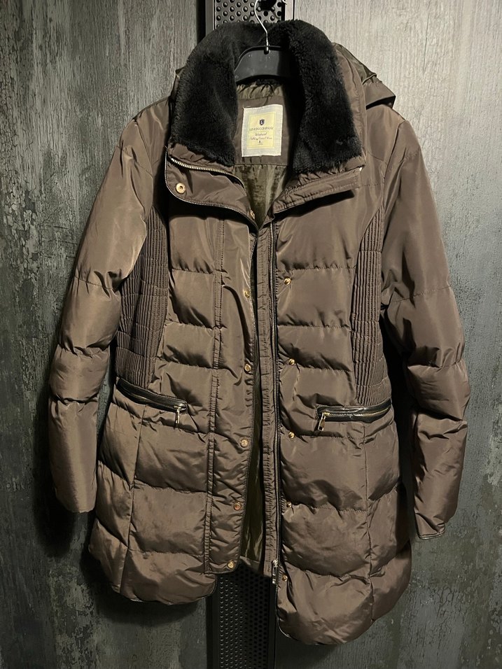 Haki yeşil kürklü detaylı, yaka kısmı kesik yakalı, uzun kollu, normal midi boyda, sıcak ve yumuşak kumaştan yapılmış genç kadın kışlık mont. Rahat günlük kullanım için uygundur. ❄️