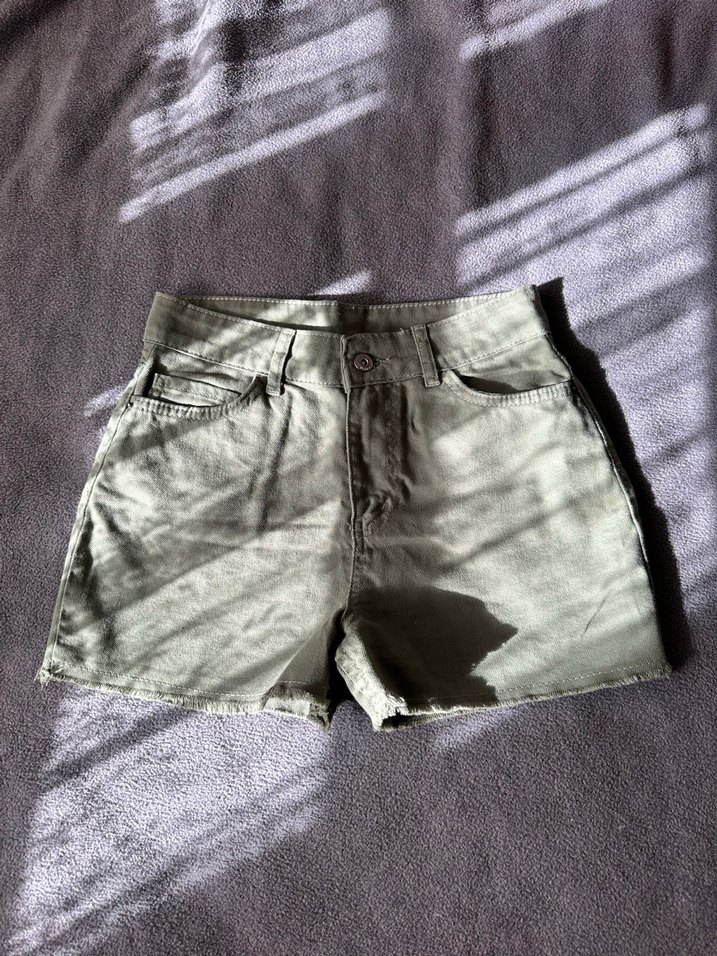 Haki mini şort. Hiç giymedim küçük geldiği için satıyorum yenidir.