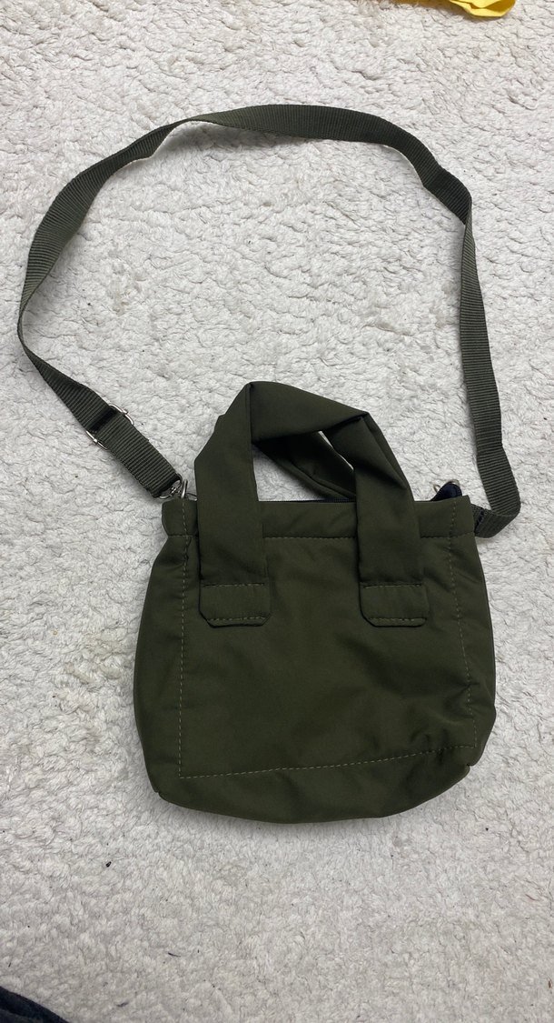 ÜRÜN ETİKETİ YOKTUR Haki yeşil ve gri tonlarında, kemerli tasarıma sahip sade, minimalist kadın el çantasıdır. Günlük kullanıma uygundur. 1 2 kere kullanılmış temizdir