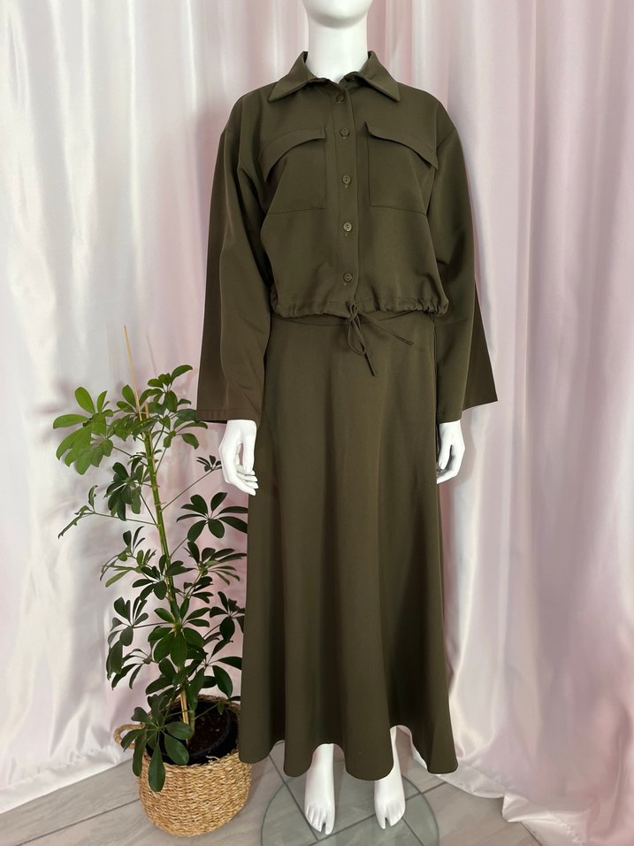 Haki yeşil, uzun kollu, salaş kesim ikili takım. 38-42-44 beden mevcuttur Swan_butikk
