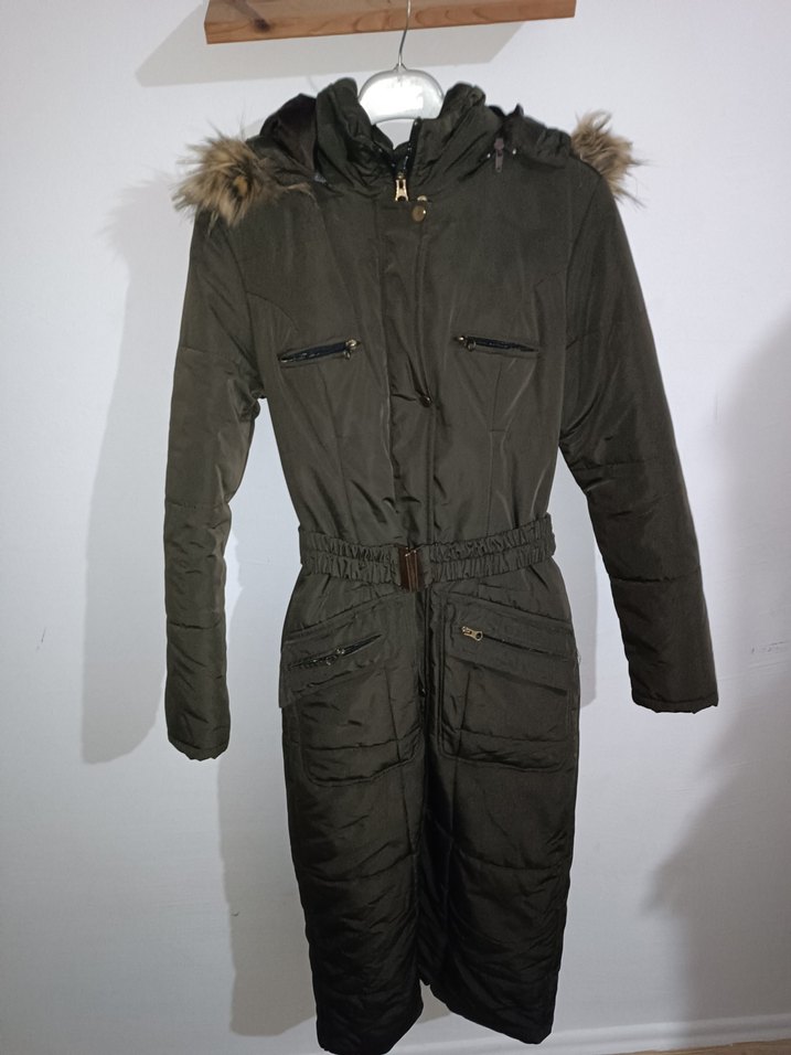 haki yeşili astarlı uzun 120 cm bayan mont 38 beden