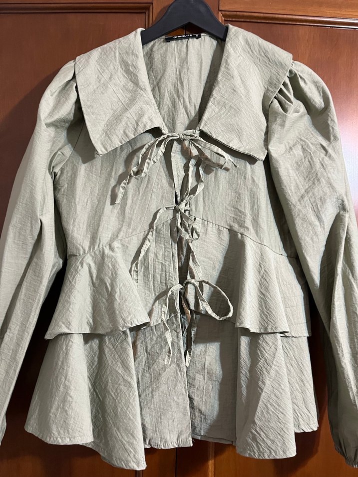 Haki yeşili bağcıklı yakalı hırka. Hiç giyilmedi aynı üründen bende olduğu için satıyorum. Tertemiz bir kusur yok
