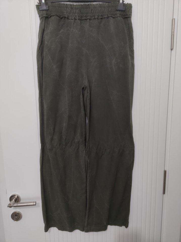 Haki Yeşili Bol Kesim Keten Kadın Pantolon M beden