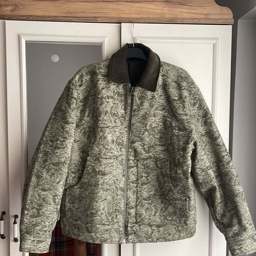 Fermuarlı ve kesik yaka detaylı bu erkek ceket, yumuşak ve sıcak kumaştan gri yılan desenli olarak tasarlanmıştır. Uzun kollu, bol kesim ve günlük kullanıma uygundur.