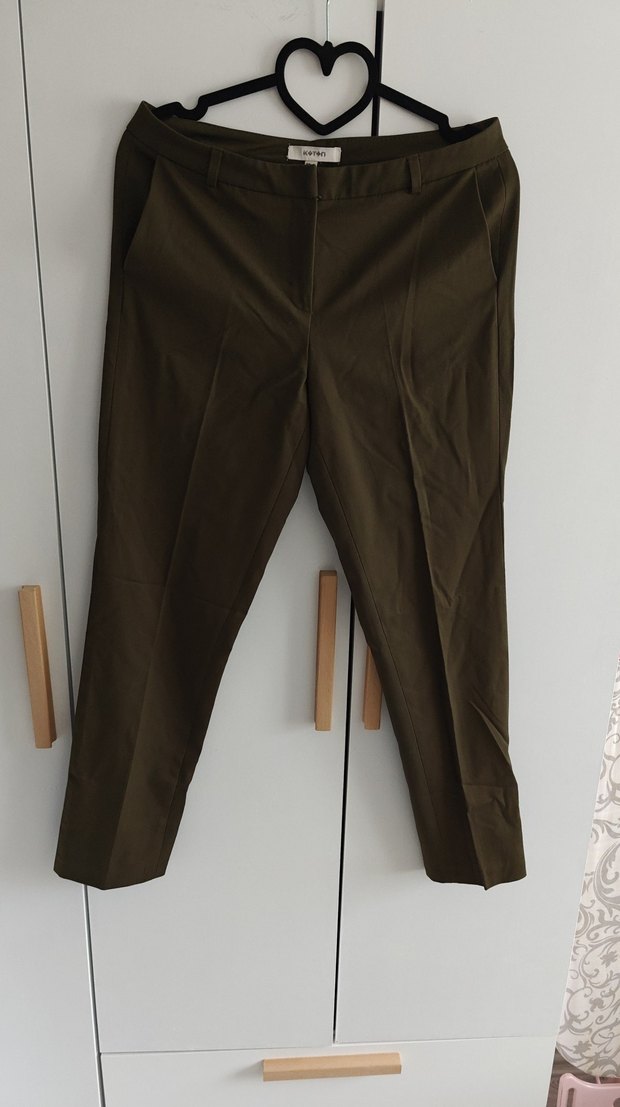 haki yeşili , kemerli, normal boy ve regular fit kadın kumaş pantolon. Düz, normcore tarzıyla ofis için uygun, sentetik dokusu yumuşaktır.