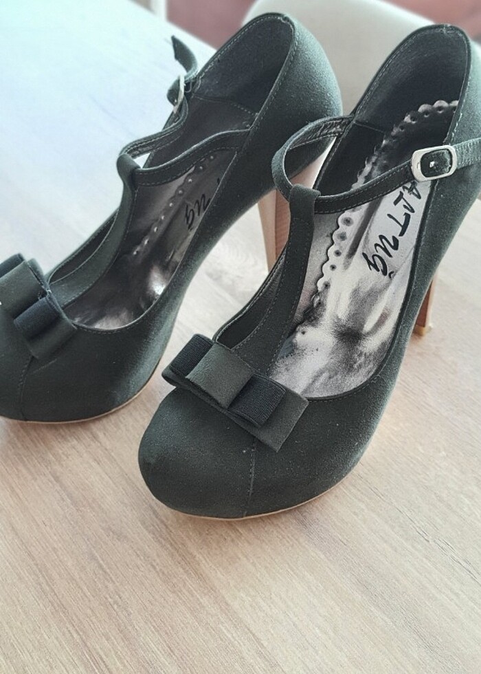 Haki yesili süet ayakkabı, topuklari her yeri çok sağlam 2 kez kullandım artık yüksek ayakkabı giyemedigim için satıyorum çok yeni durumda tabanlarindan anlarsınız. 38 numara olmasına rağmen ben 37 giydiğim halde bana oluyor, dar kalıp biraz.