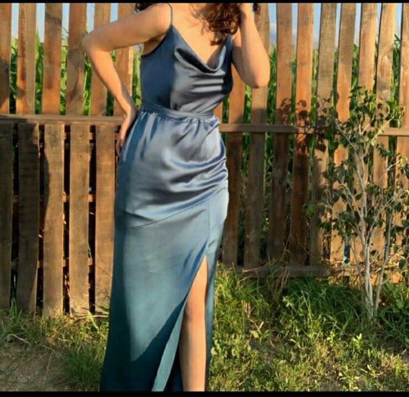 haki yeşili herkesin giydiğimde bayıldığı şık ve sade bir elbise. görselde belirttiğim gibi küçük bir defosu var fakat giyildiğinde hiç belli olmuyor