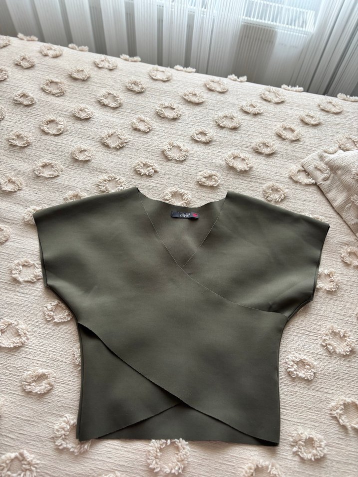 Haki Yeşili V Yaka Kadın Bluz