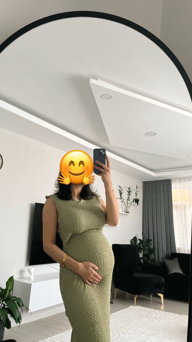 Haki Yüksek Yakalı Hamile Midi Elbise