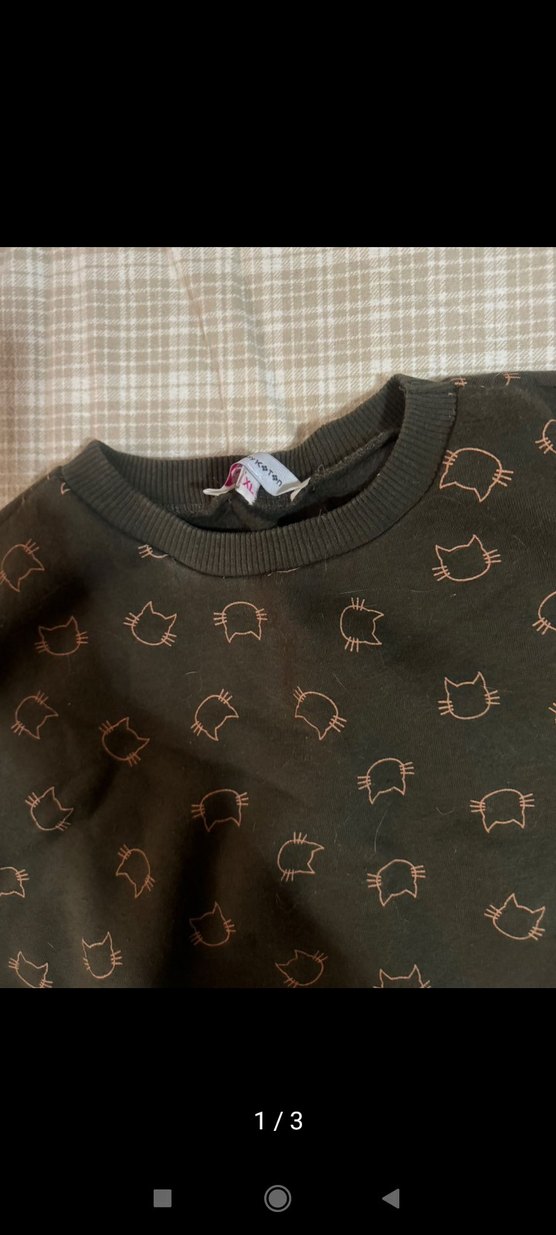 Uzun kollu, yuvarlak yaka ve bol kesim kız sweatshirtü. Yumuşak pamuklu kumaştan, koyu haki renk ,trend sokak stili için uygun.