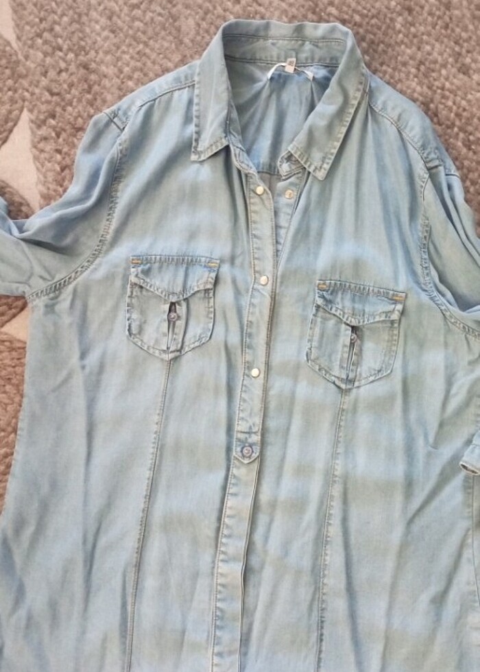 Hakika bir kumaşı var dökümlü kot kumaş gömlek. Kaçirmayin derim